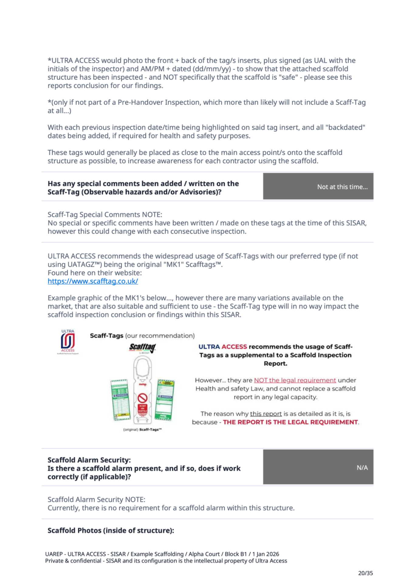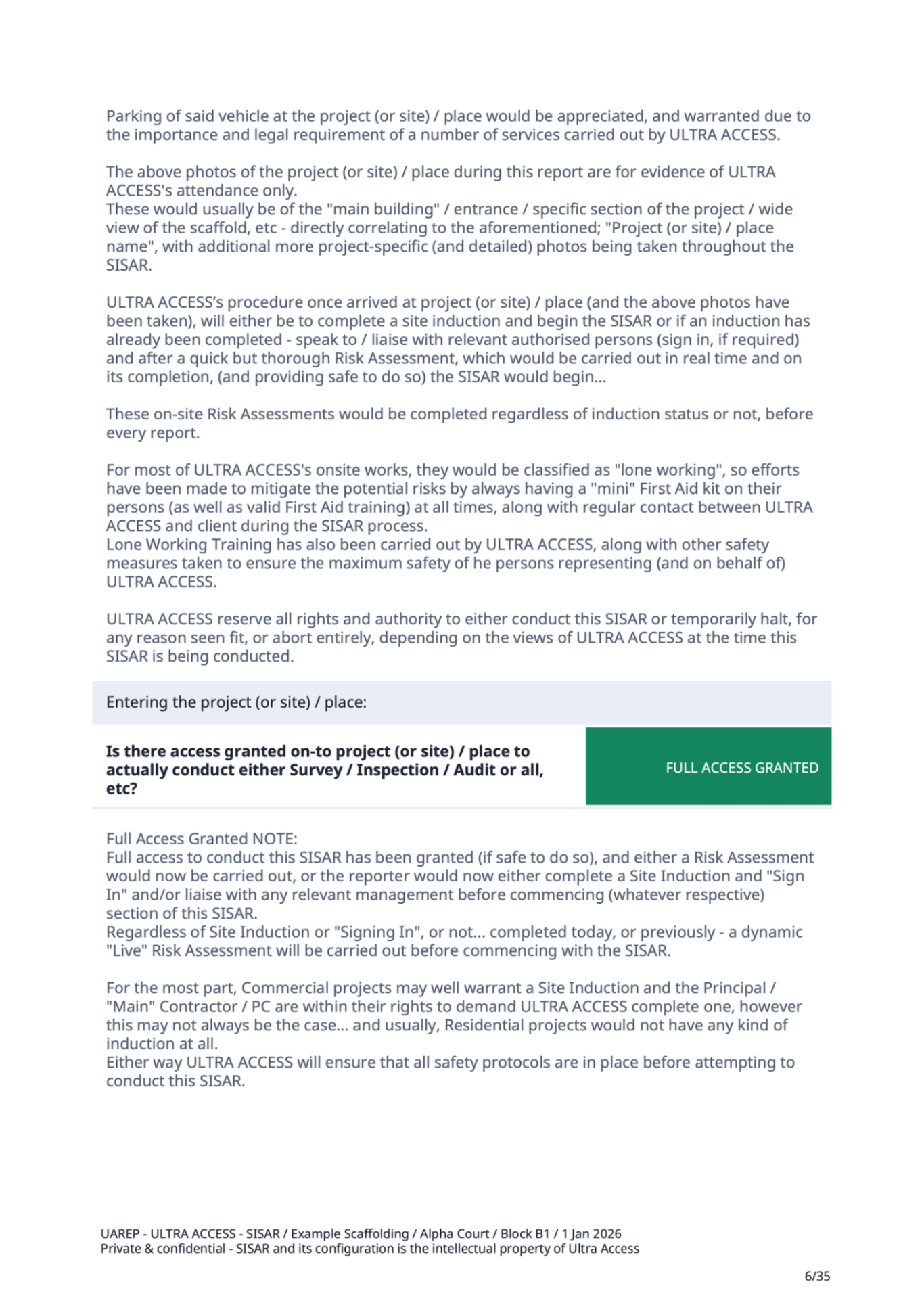 ... along with (unaffiliated Scaffold Trade Body) Pre-Membership Compliance Audits (PASSAC) and Scaffold Tie Pull Testing (TIPTER) by ULTRA ACCESS via our UAREP service all using our bespoke software programs (created on iAuditor).