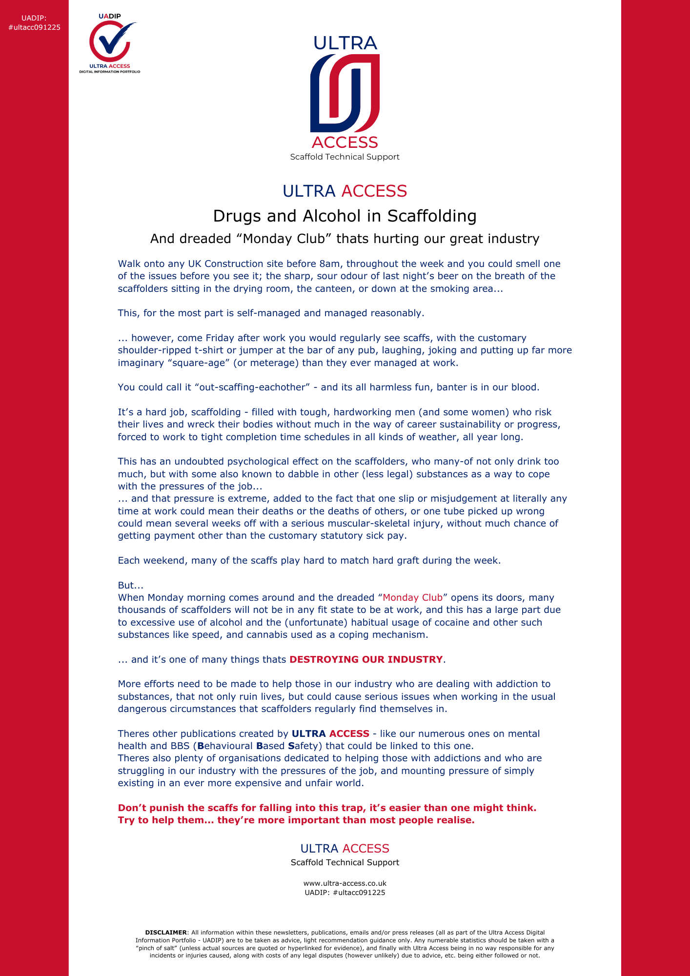 • Drugs and Alcohol in Scaffolding (the dreaded 'Monday Club') #ultacc091225