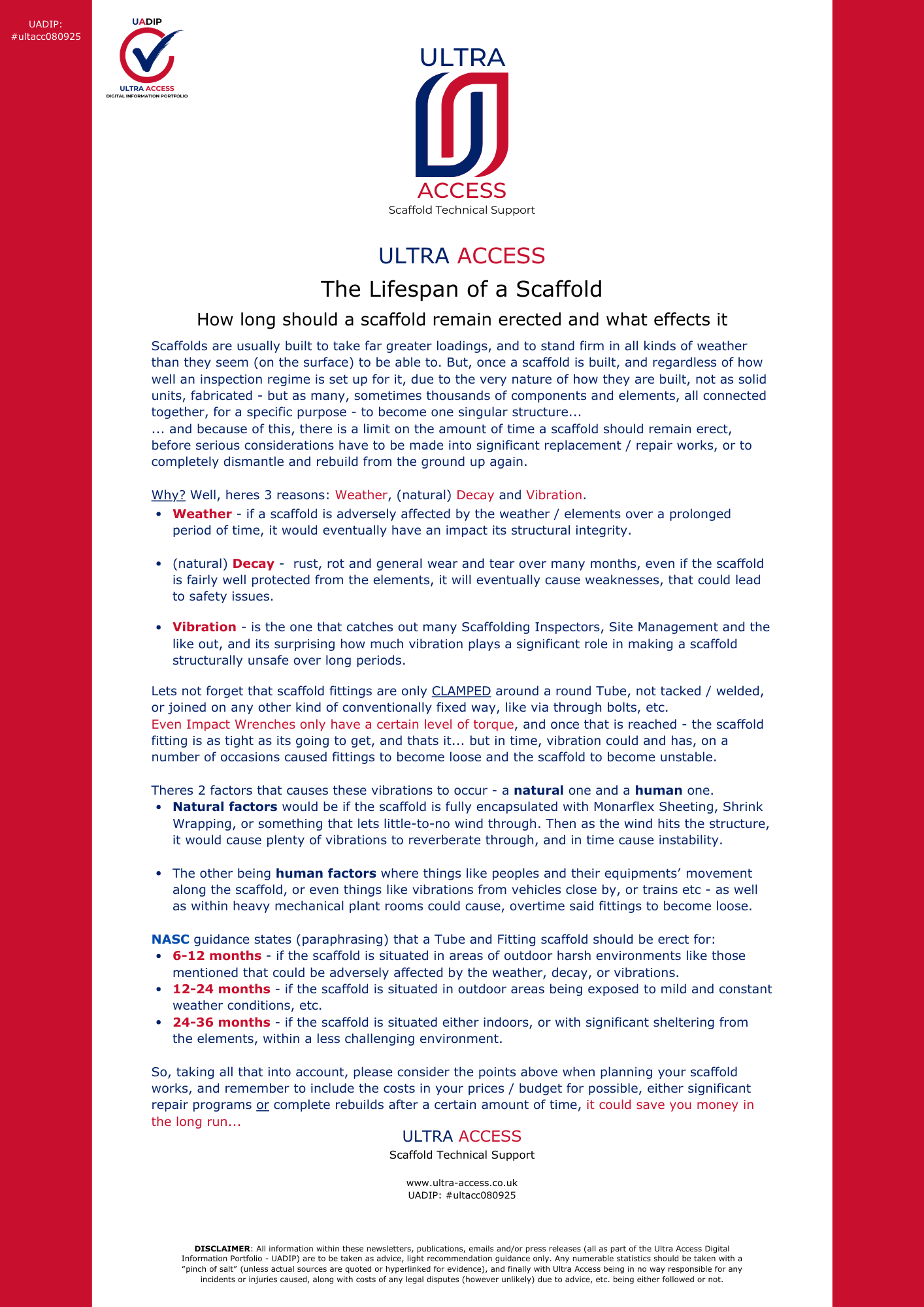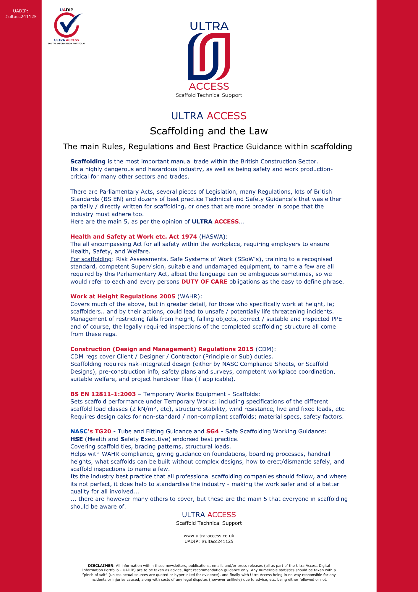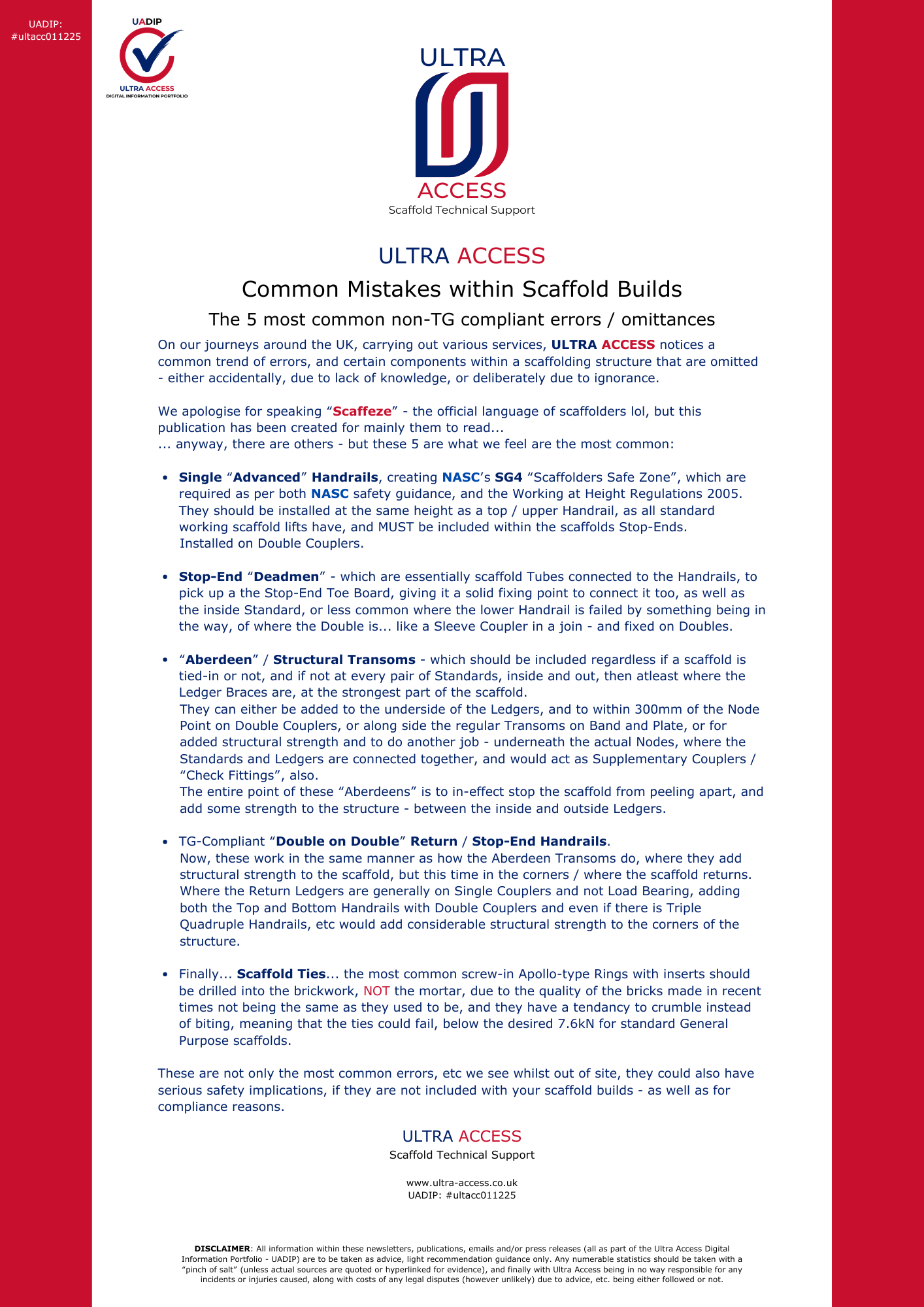 ULTRA ACCESS's Guidance, Scaffold Safety (& Wellbeing) Alerts, Advice, etc