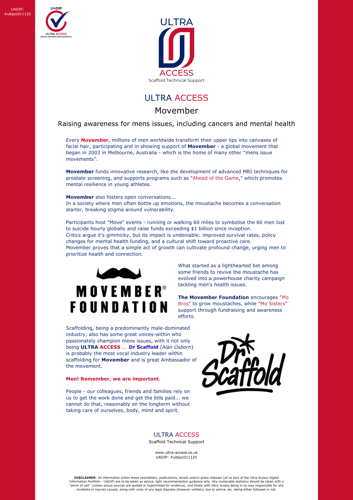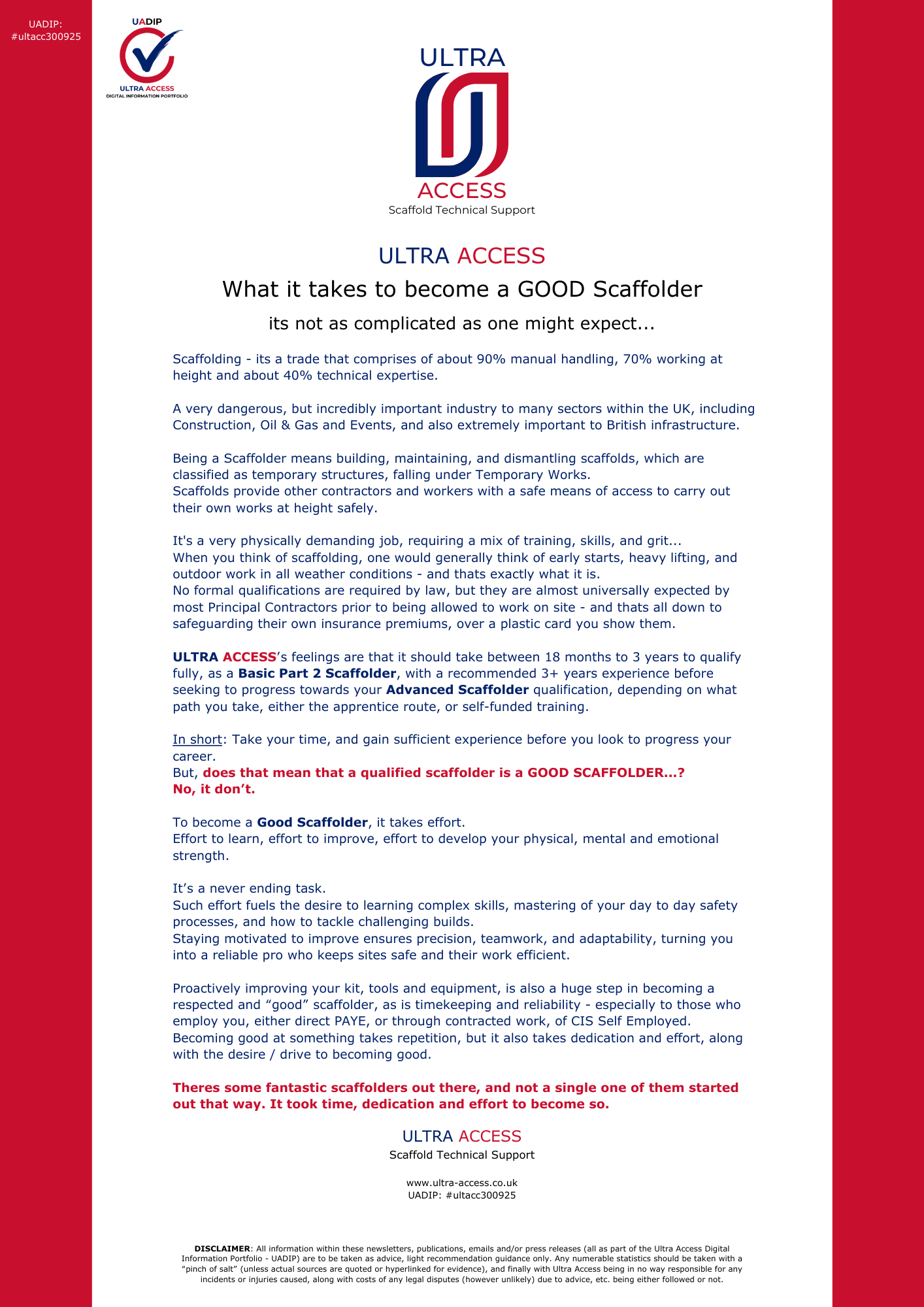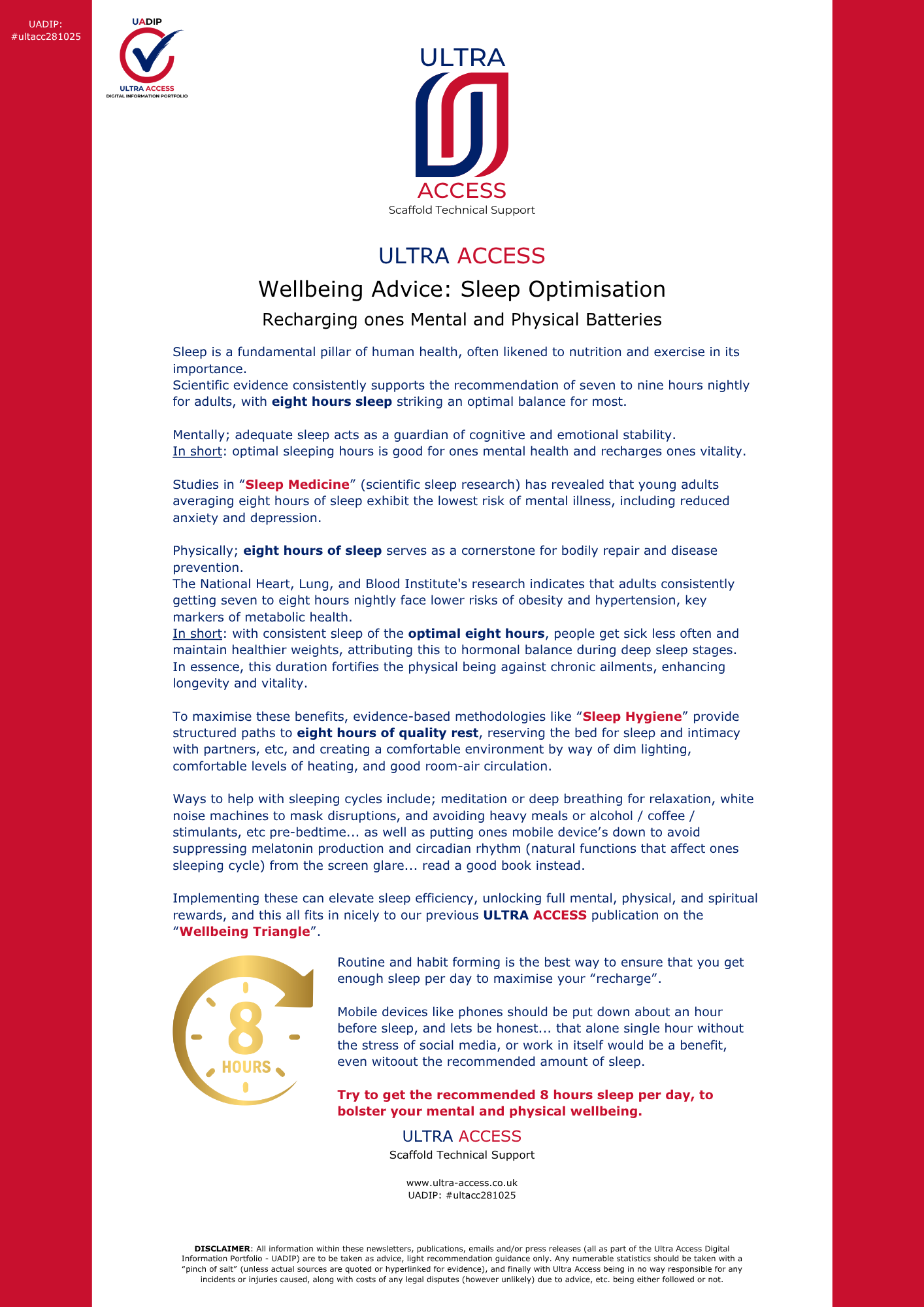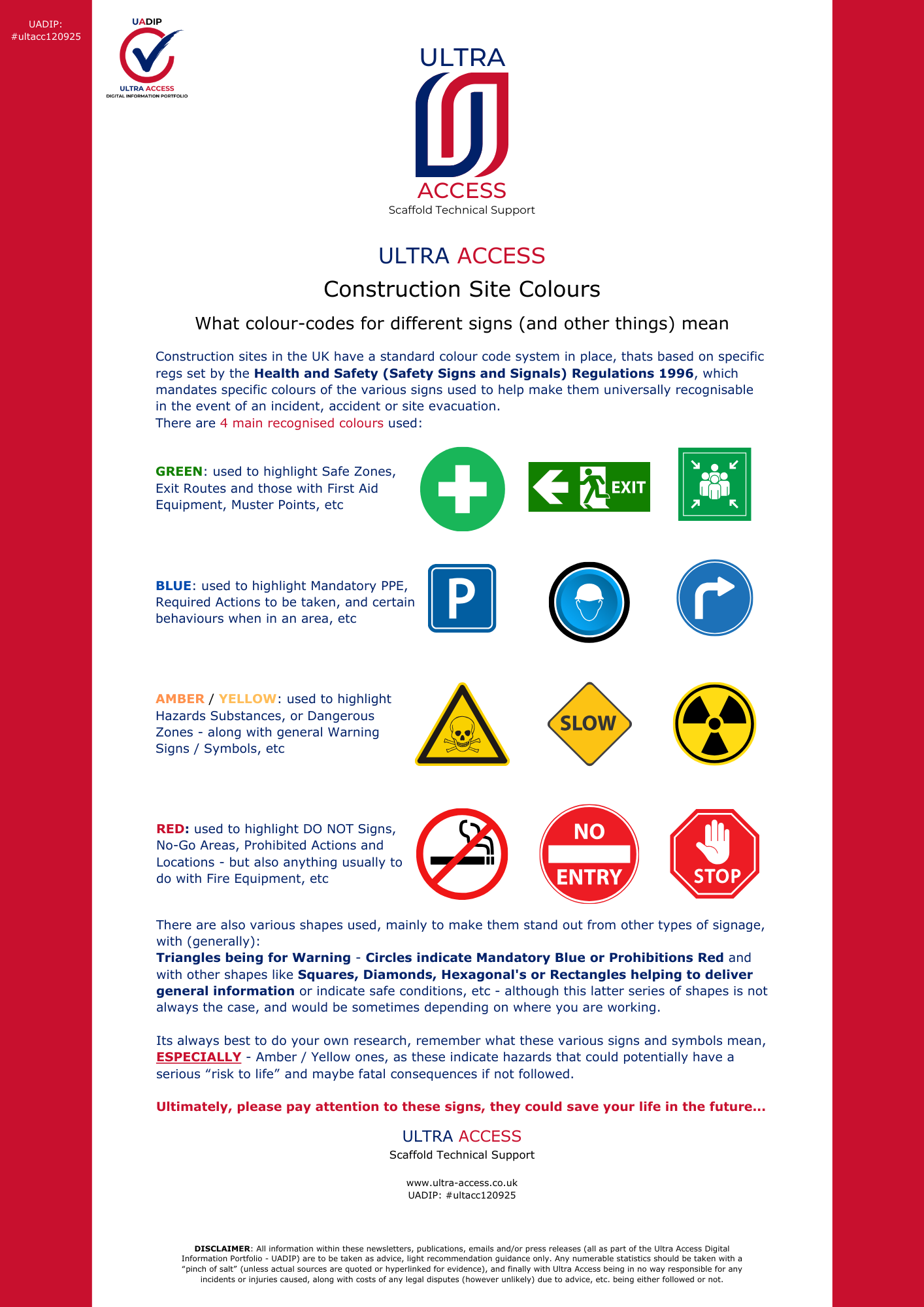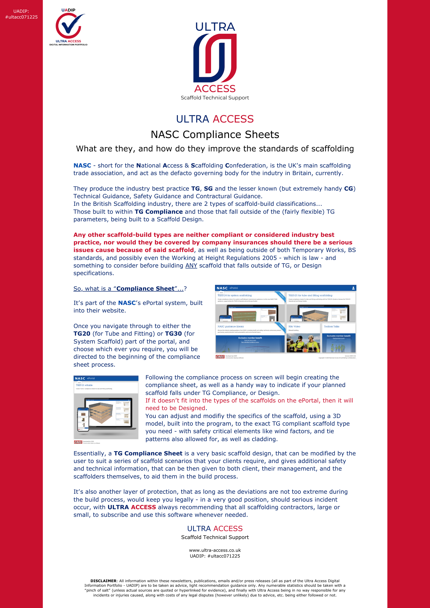 All information within these newsletters, publications, emails, tutorial videos and/or press releases (all as part of the Ultra Access Digital Information Portfolio - UADIP) are to be taken as advice, light recommendation guidance only.