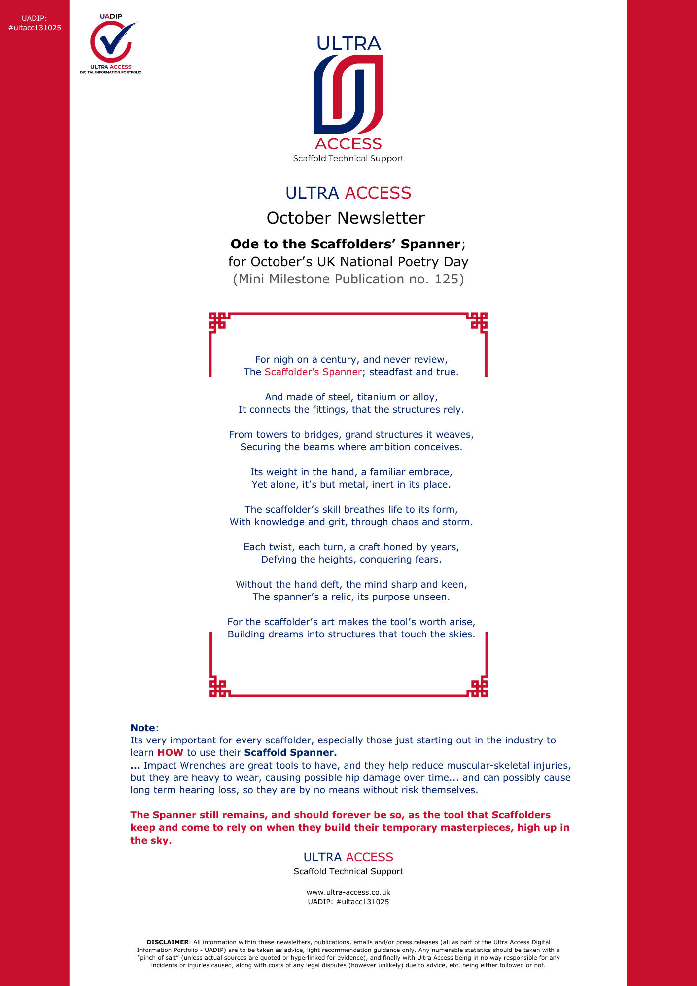 • October Newsletter (Ode to the Scaffolders' Spanner) #ultacc131025